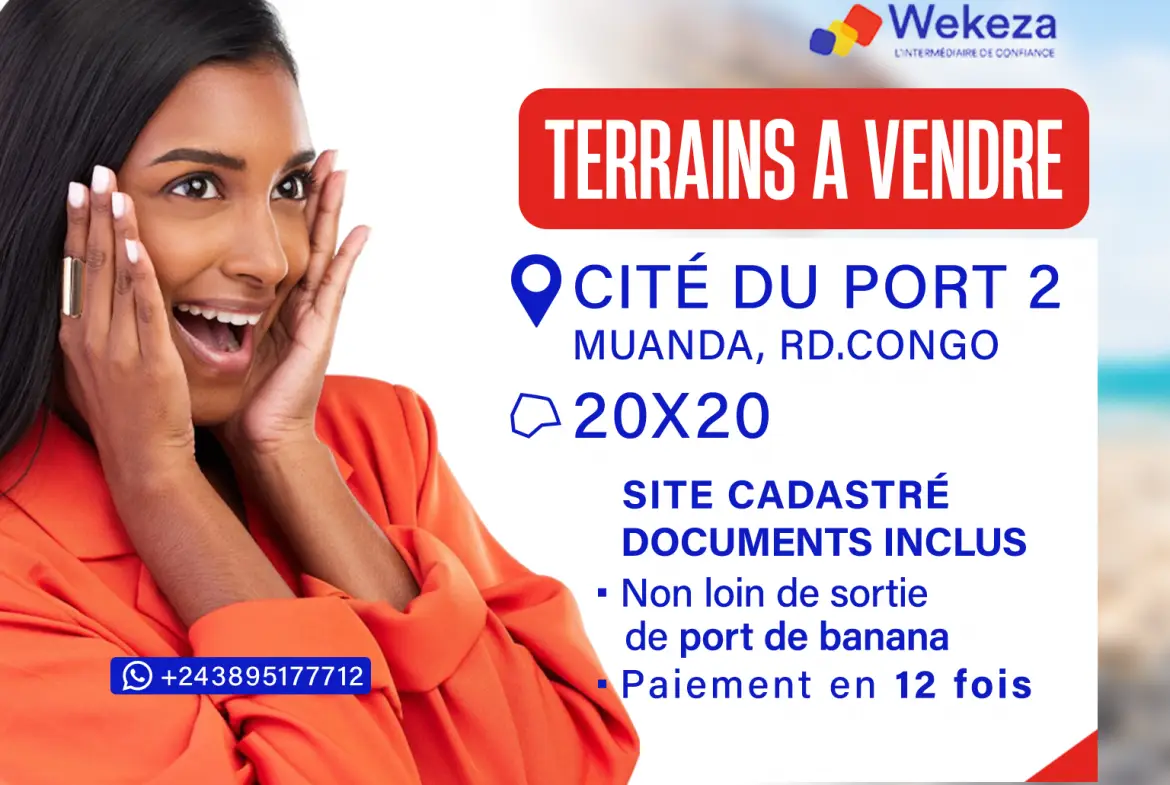 - Muanda, dans la zone périurbaine du port de la SOCIR – à proximité des grands axes routiers et à la sortie du futur port en eaux profondes de Banana, à seulement 10 minutes du centre-ville et des nouveaux lotissements résidentiels.